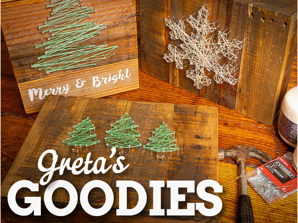Even if you don’t consider yourself an artist, you can add some country Christmas to your home’s décor with Greta’s string art. All you’ll need are wood scraps, nails, a hammer, thread, a stencil, and some time to enjoy this relaxing art project.