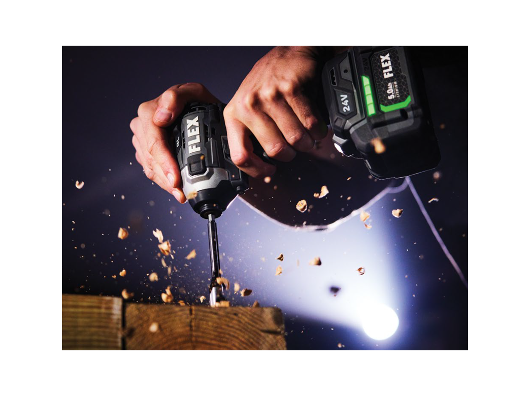Bring your best to drilling and fastening applications with the combined power and control of the FLEX SENSOR-FREE™ Brushless MOTOR, 1/2" 2-Speed Hammer Drill Driver, and 1/4" Quick Eject Hex Impact Driver. This hammer drill clocks in at 1,400 in-lbs. of industry-leading torque, 2,500 RPM, and 40,000 IPM. The hex impact driver delivers 2,500 in-lbs. of torque at 4,000 RPM with multi-mode control. Total FLEX 24V cross-compatibility ensures these tools share the FLEX Advantage of unrivaled FLEX battery power, runtime, and charging capability. Includes both tools, two 24V batteries, and one charger. All protected by a 5-year end-to-end product warranty.
