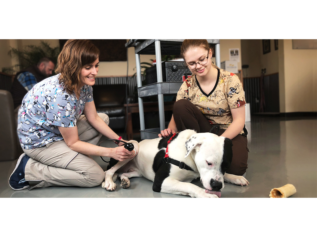 For several decades, laser therapy has been used on humans to reduce joint and muscle pain and promote healing. The class-3 (safe for use on people and animals) laser light used in this therapy includes monochromatic light, coherent light that emit photons, and collimated light that pushes photons in a single, straight beam. When the laser light is focused on a person or animal, it can cause the release of endorphins, increased blood flow, and muscle relaxation.