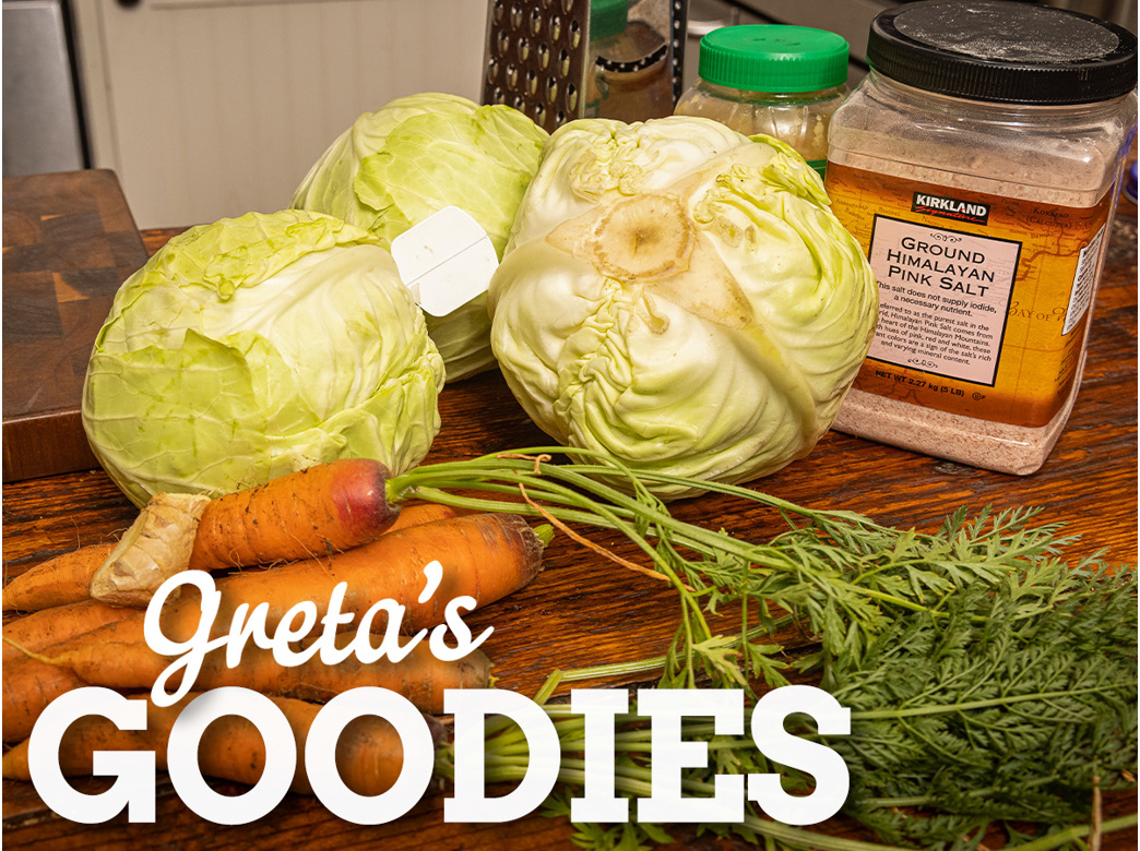 The time-honored tradition of fermenting cabbage has been around for centuries. It was a way of preserving foods and nutrients before refrigeration. Over the centuries, the preserved mixture of greens and salt took on many names, but the title of sour cabbage or sauerkraut stuck. Today, Greta is going to share her family sauerkraut recipe.