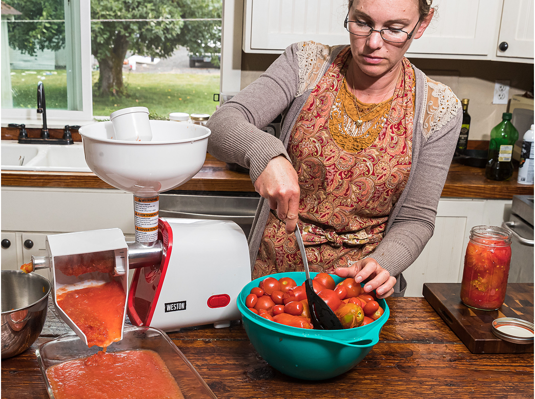 Using a Weston Deluxe Electric Tomato Strainer available at Coastal, we made short work out of sauce making.