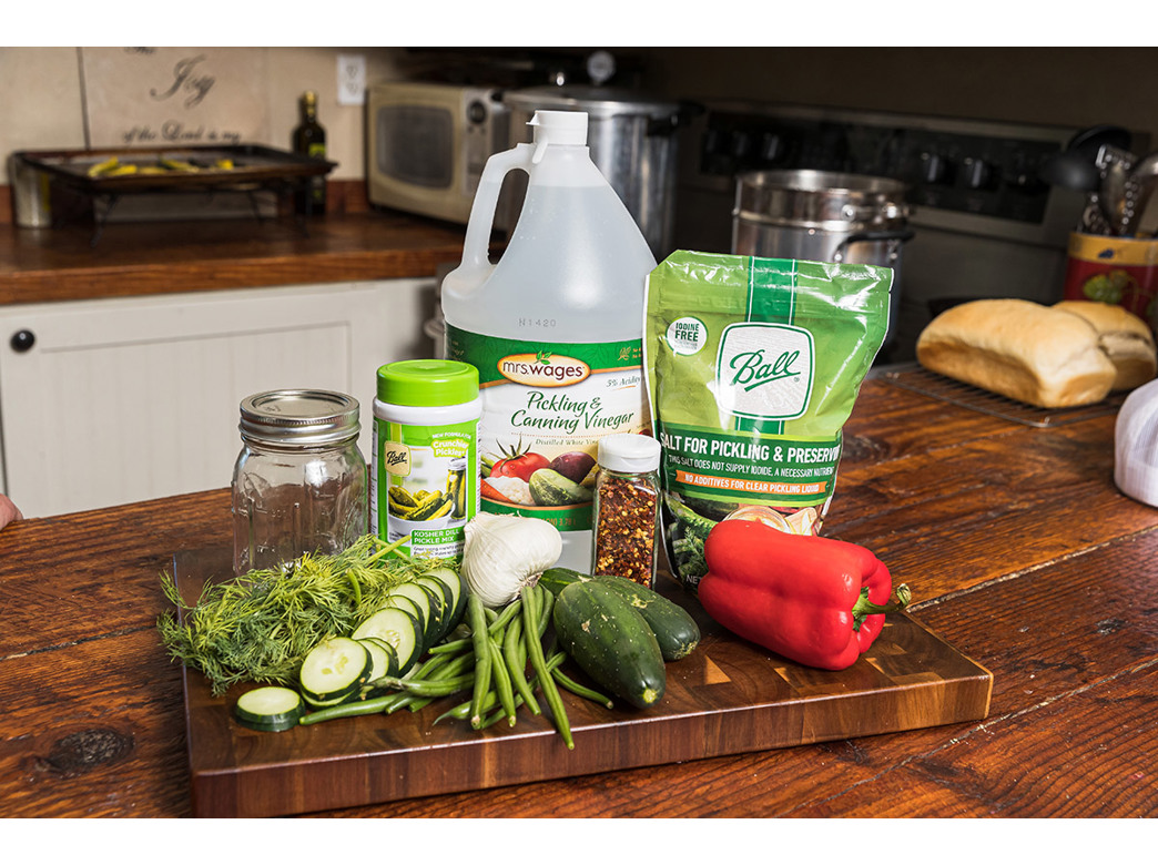 Also known as refrigerator pickling, you can quick pickle just about any vegetable from your garden or the farmer’s market. All you need are veggies, vinegar, salt, sugar, and water. Another option is Ball® Kosher Dill Pickle Mix.