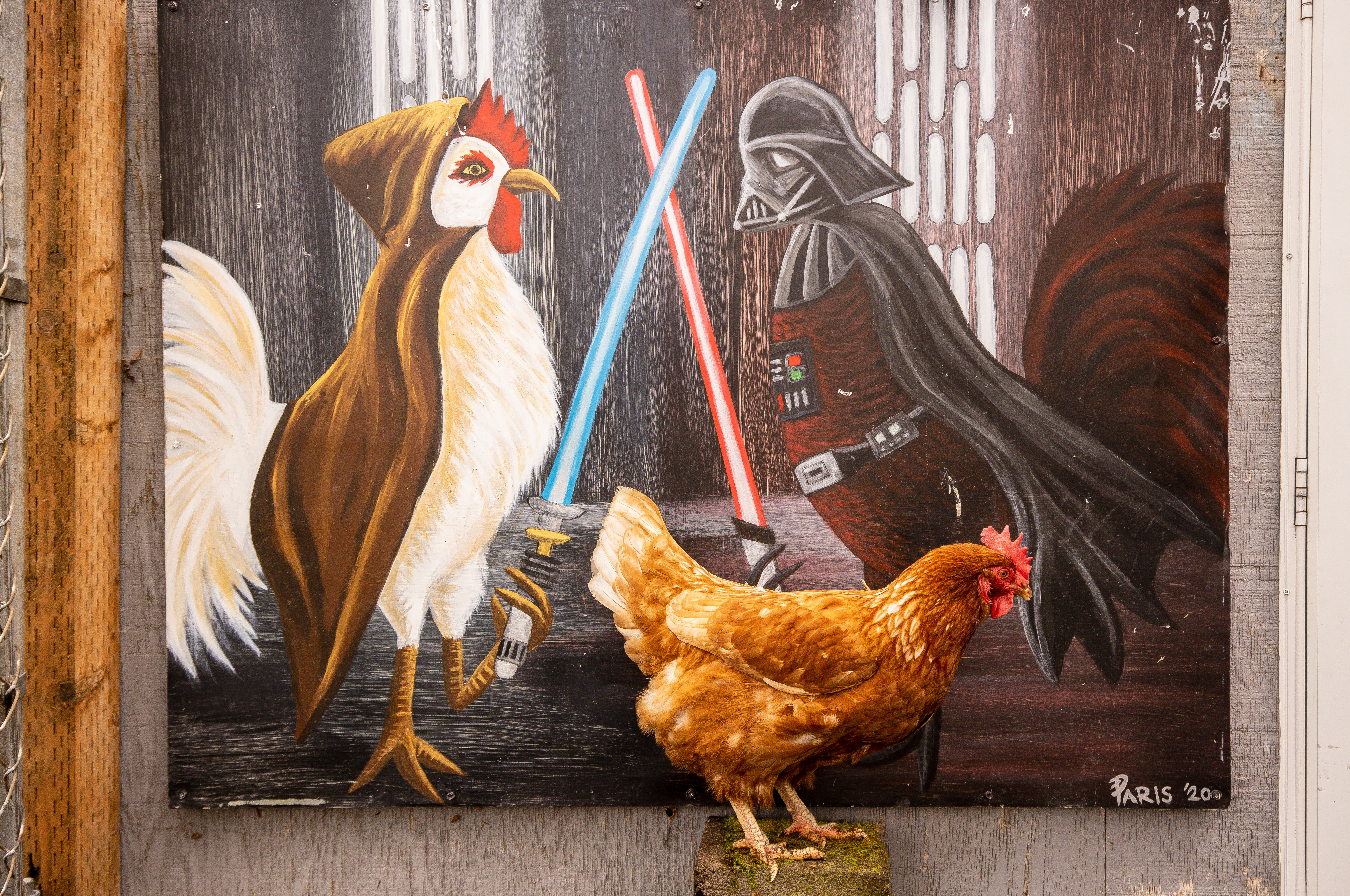 The family’s current flock, which produces enough eggs for the Loquist family and several surrounding neighbors, includes Luce Skybawker, CHEEP-3PO, Jabba the Cluck, Gogurt (named after Grogu), Ova-Fett, Obi-Wan Henobi, and Mace Wingdu. You can keep up with the whole brood on Instagram @the.flock.strikes.back.